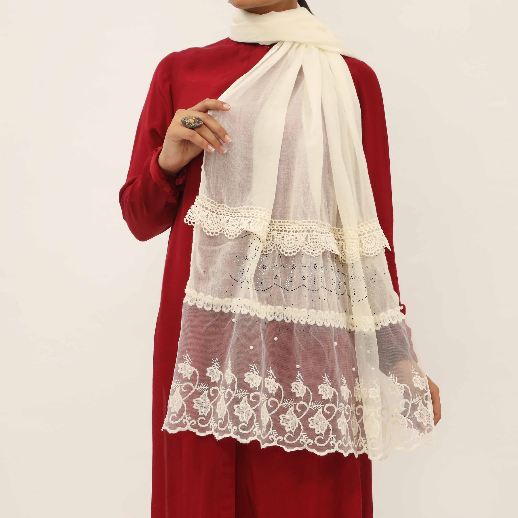 Cream Embroidered Stole PD5287