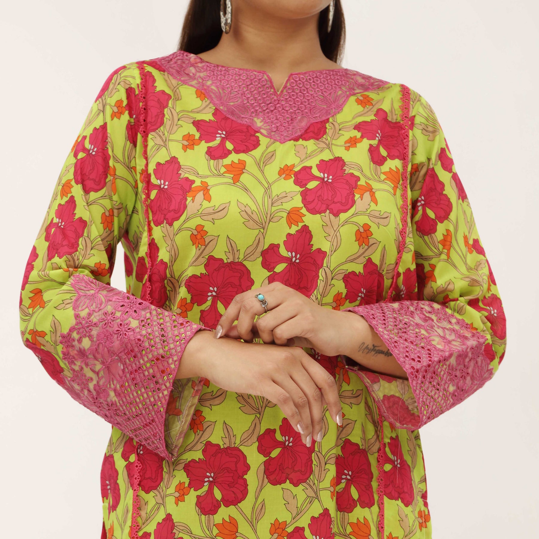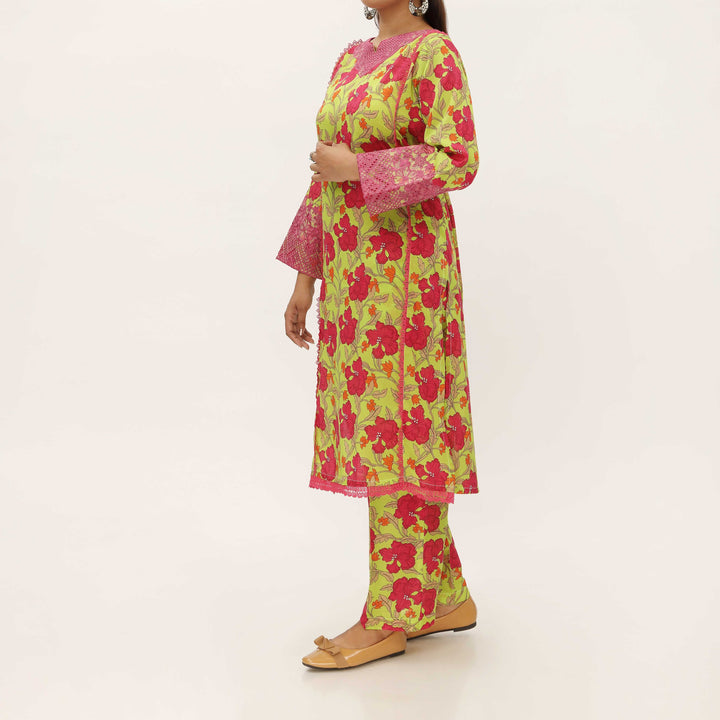 Digital Printed Cambric Shirt And Trouser With Embroidery