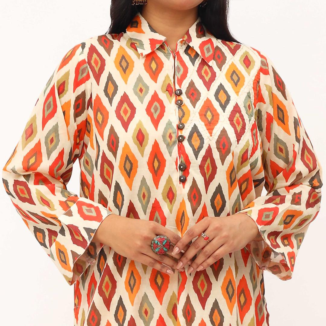 Digital Printed Lawn Shirt with Golden Tila Embroidery and Digital Printed Cambric Trouser