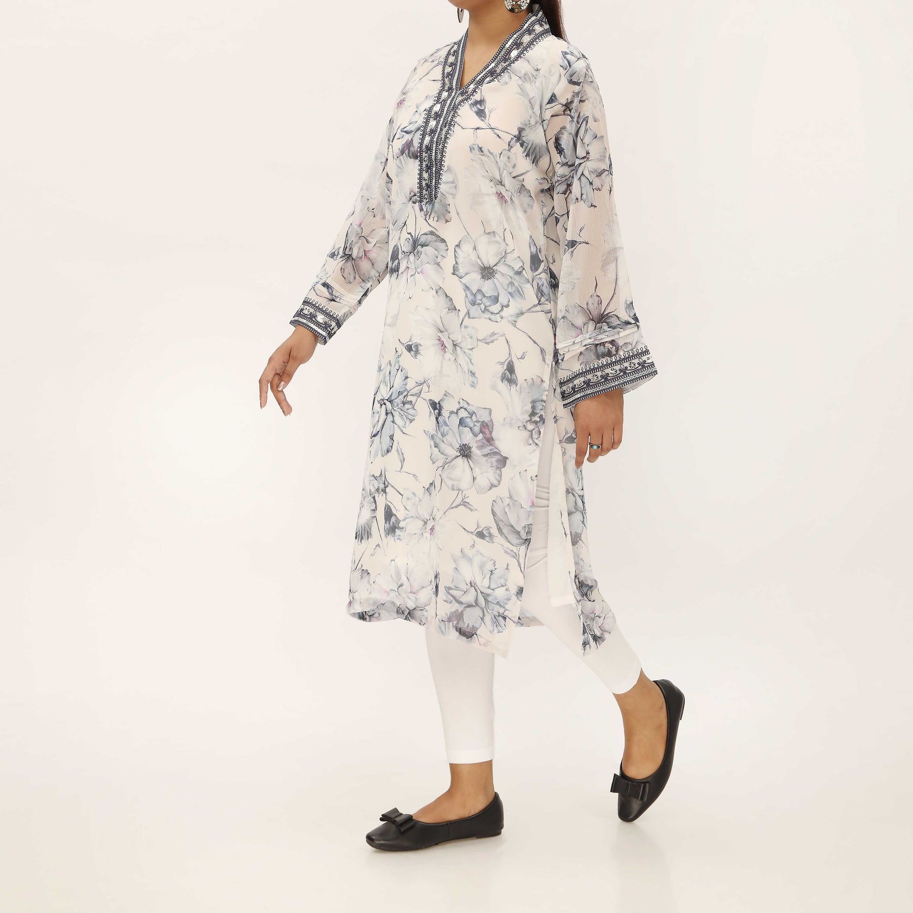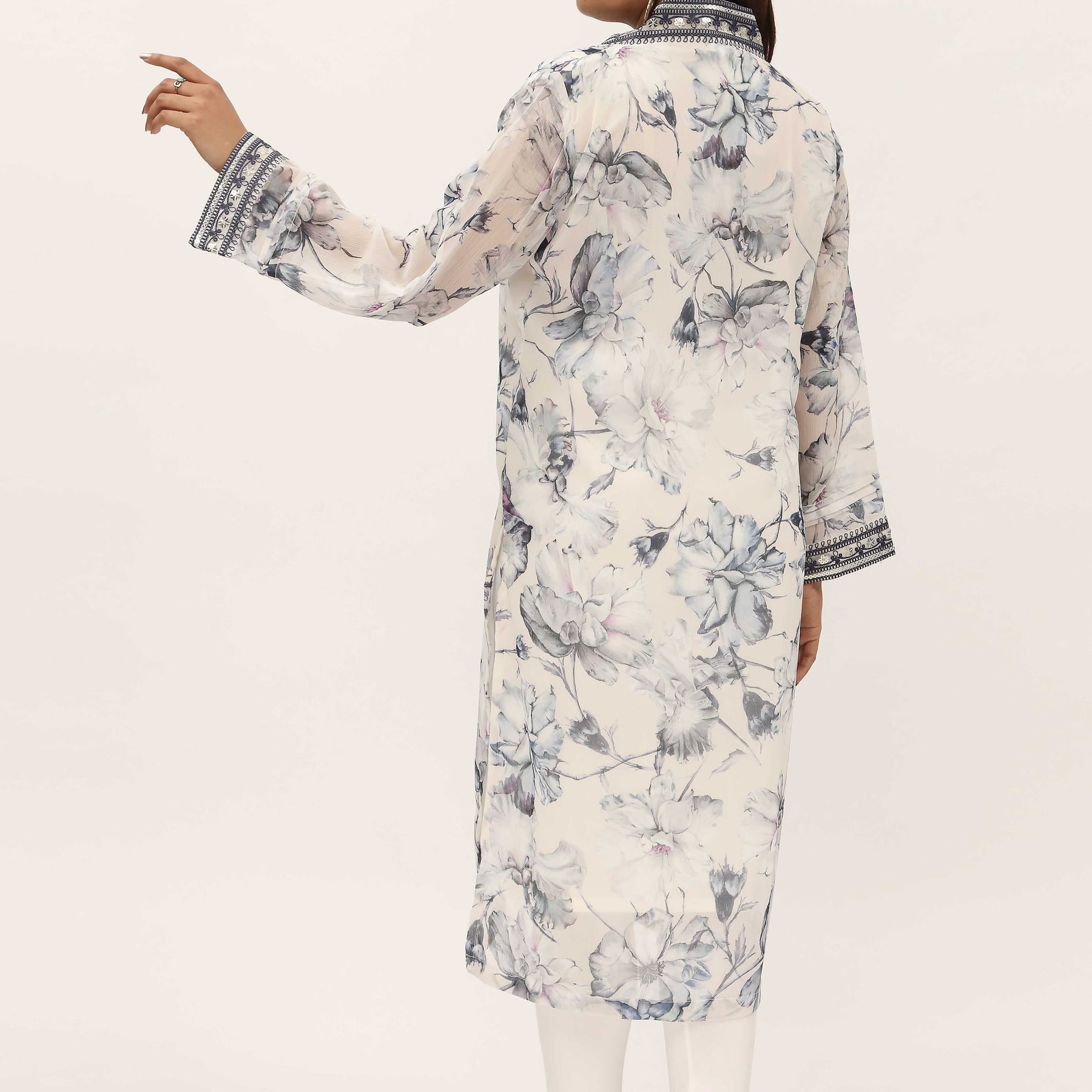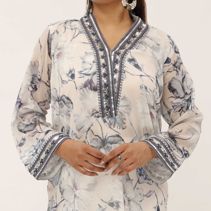 Digital Printed Crinckle Chiffon Shirt With Embroidery