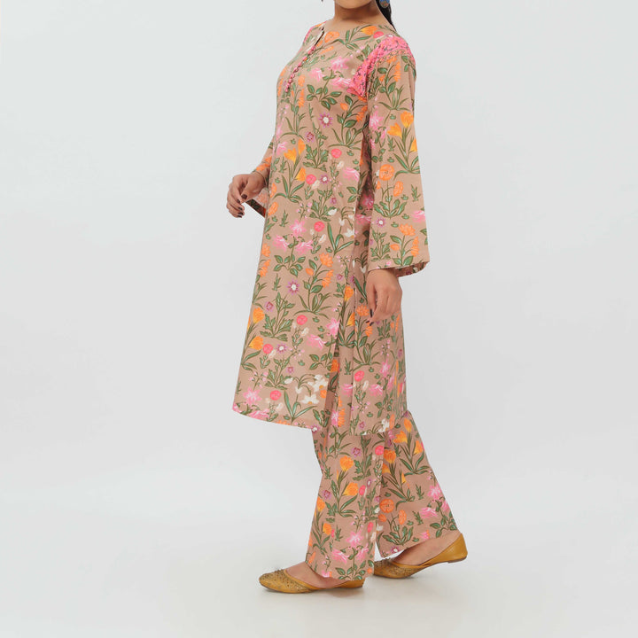 2PC- Digital Printed Cotton Cambric Co-ord Set PS5376