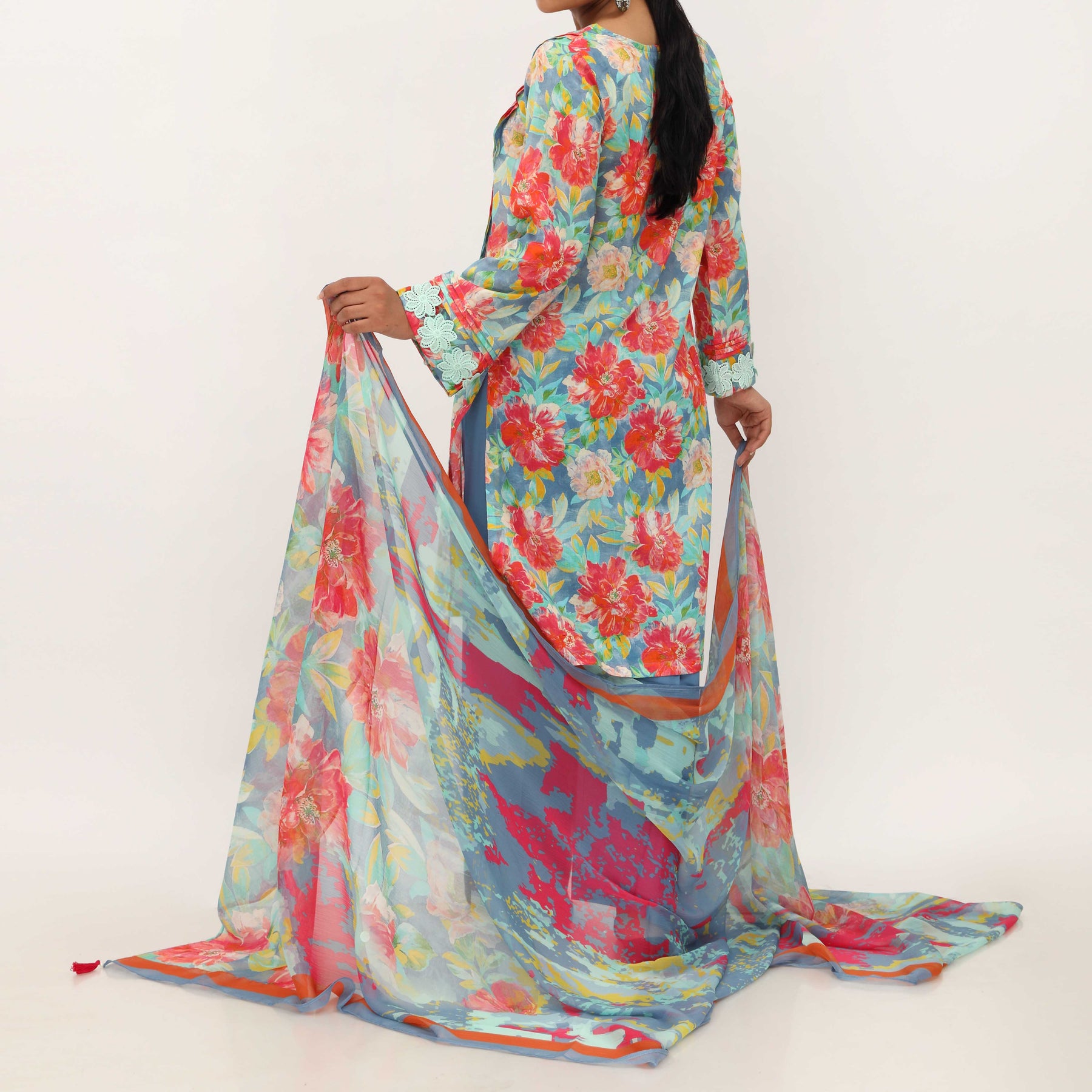 Digital Printed Lawn Shirt, Cambric Trouser and Printed Chiffon Dupatta