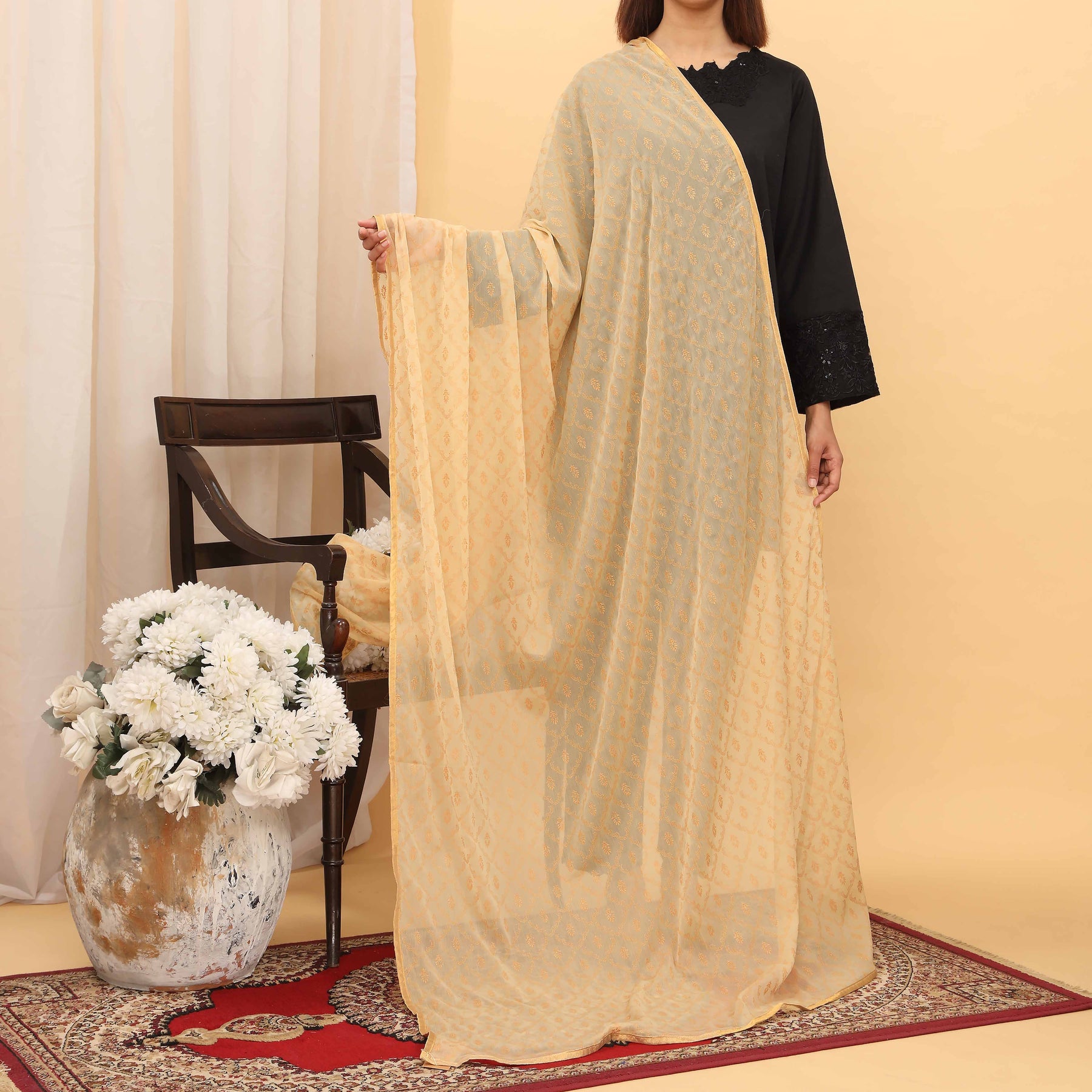 Beige Screen Printed Chiffon Dupatta PD5390
