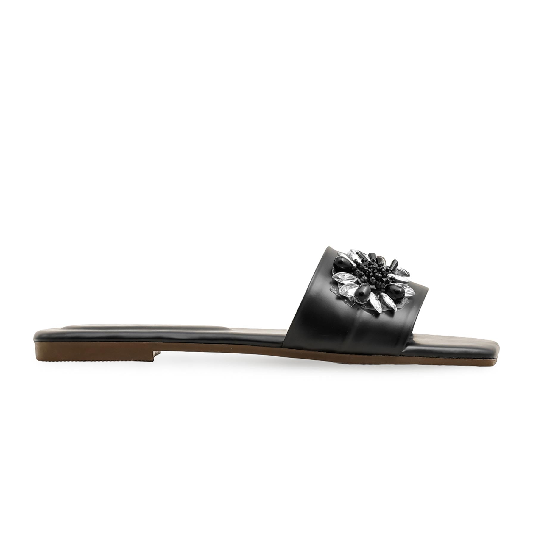 Step out in style with these elegant slippers, featuring a beautiful floral and rhinestone-embellished strap.