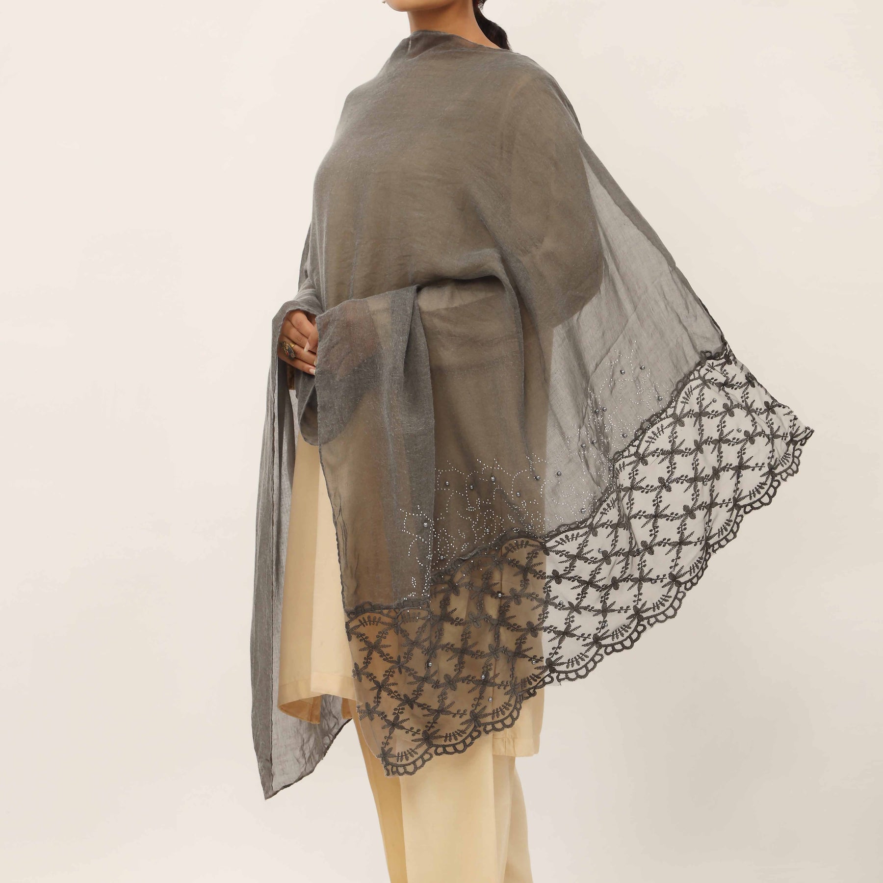 Black Embroidered Stole PD5246