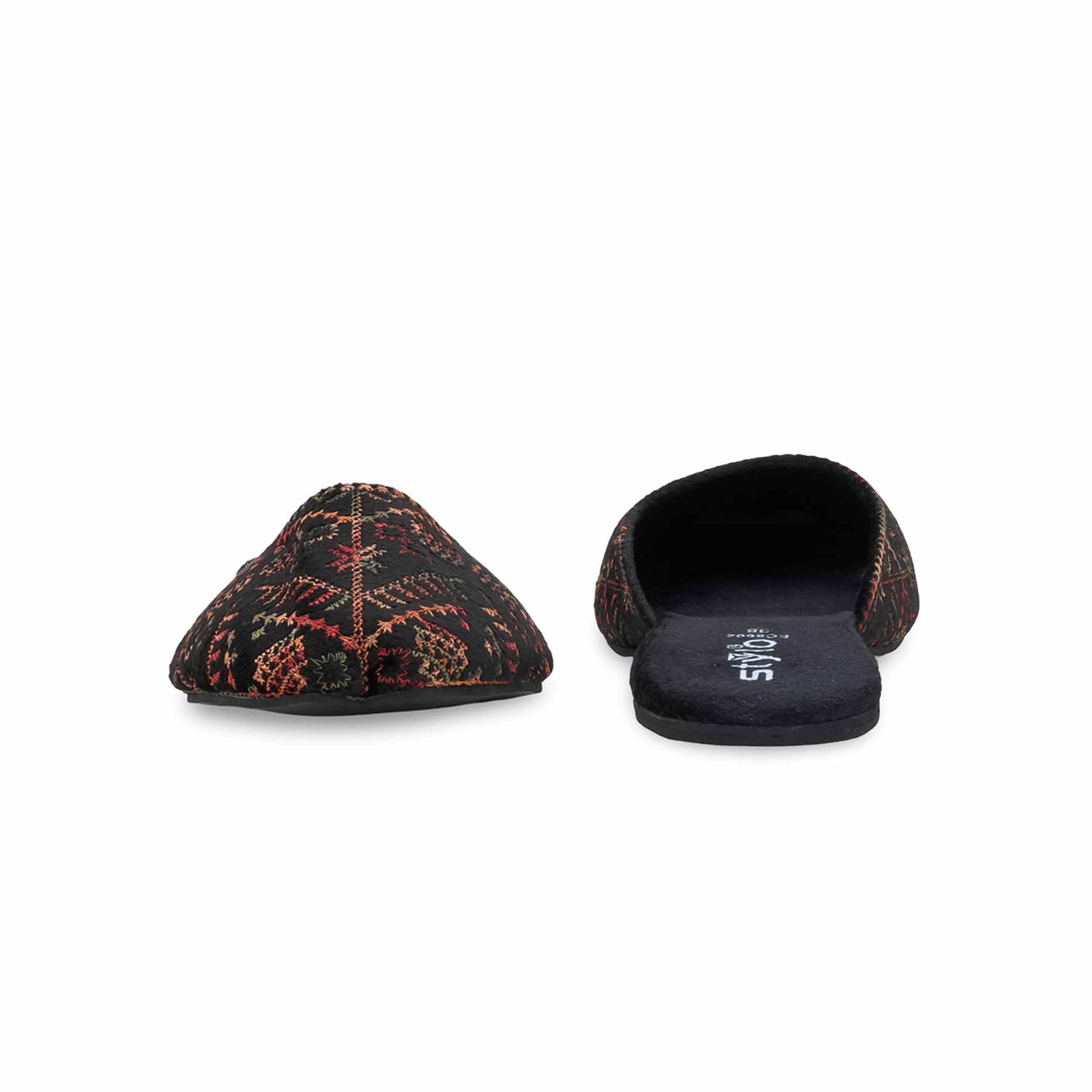 Embrace traditional elegance with our Black Ethnic Back Open Khusa. These sophisticated slip-on flats feature a subtle embroidered or patterned upper and a classic pointed toe, perfect for complementing ethnic wear or adding a refined touch to your casual outfits.