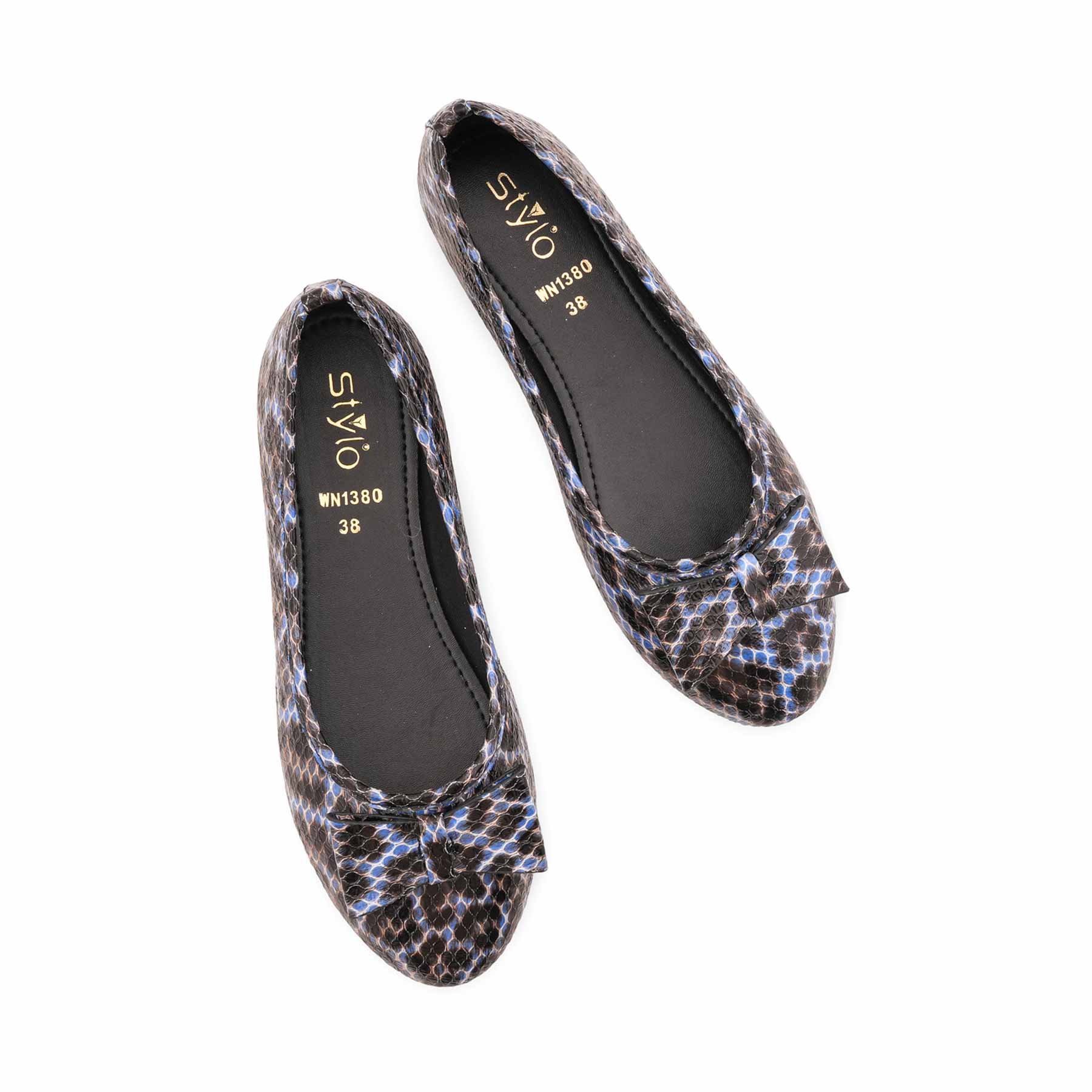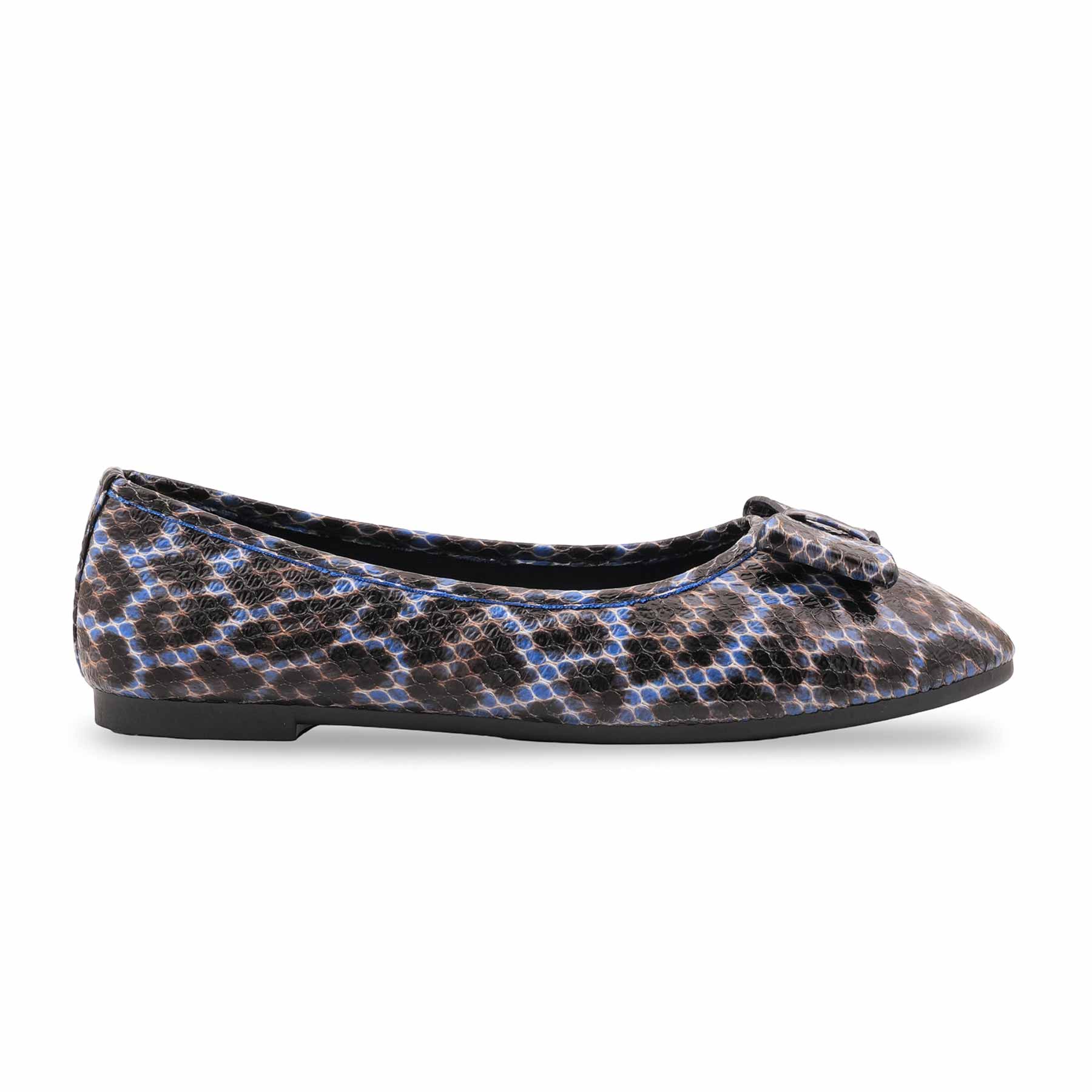 Add a touch of edge to your outfit with this blue casual pump for women. Featuring a trendy snakeskin-textured upper and a classic bow detail, it offers style and comfort for all-day wear.