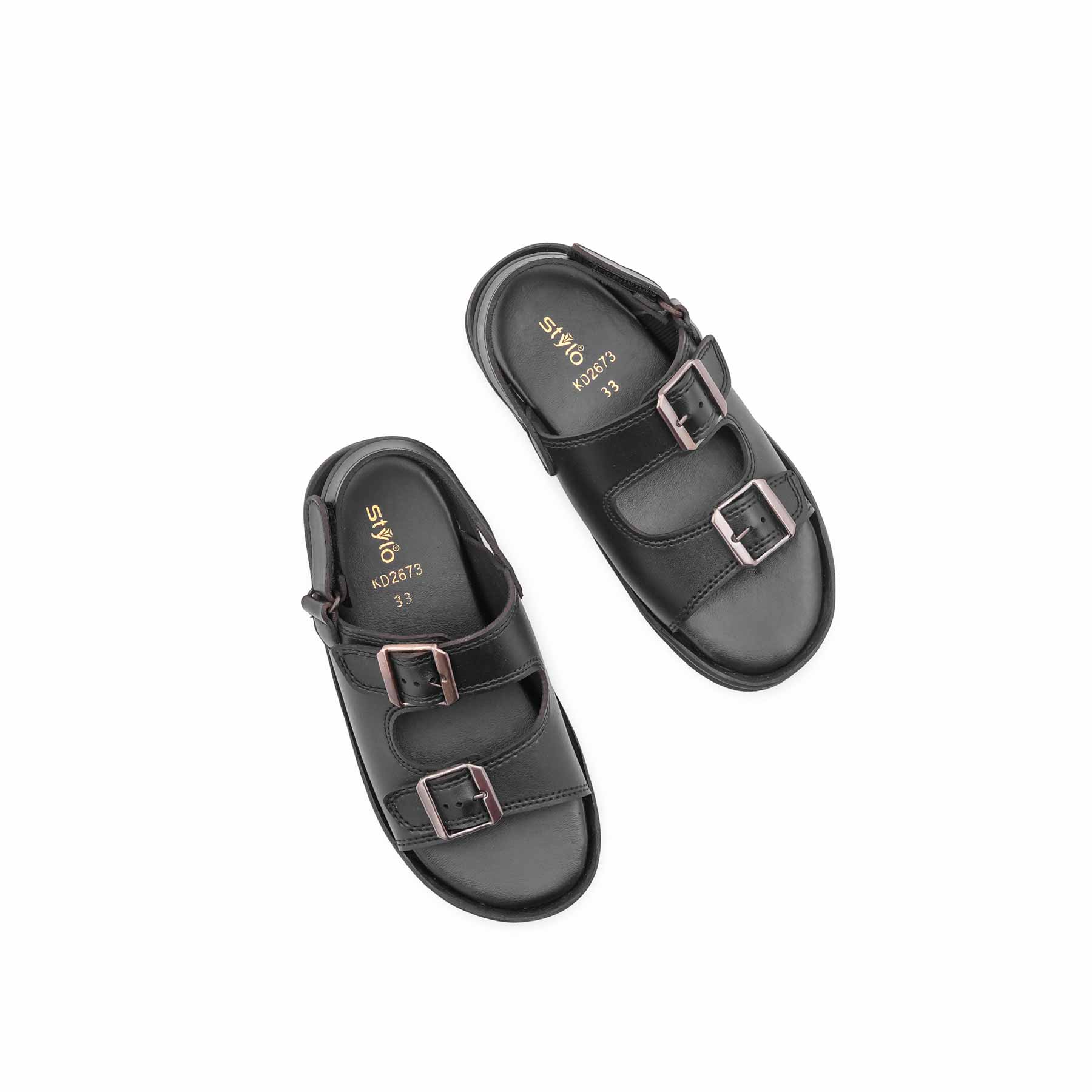 This stylish boys black formal sandal features elegant double buckles and a durable rubber sole. Ideal for festive gatherings, ensuring a secure fit and comfortable all-day walking.