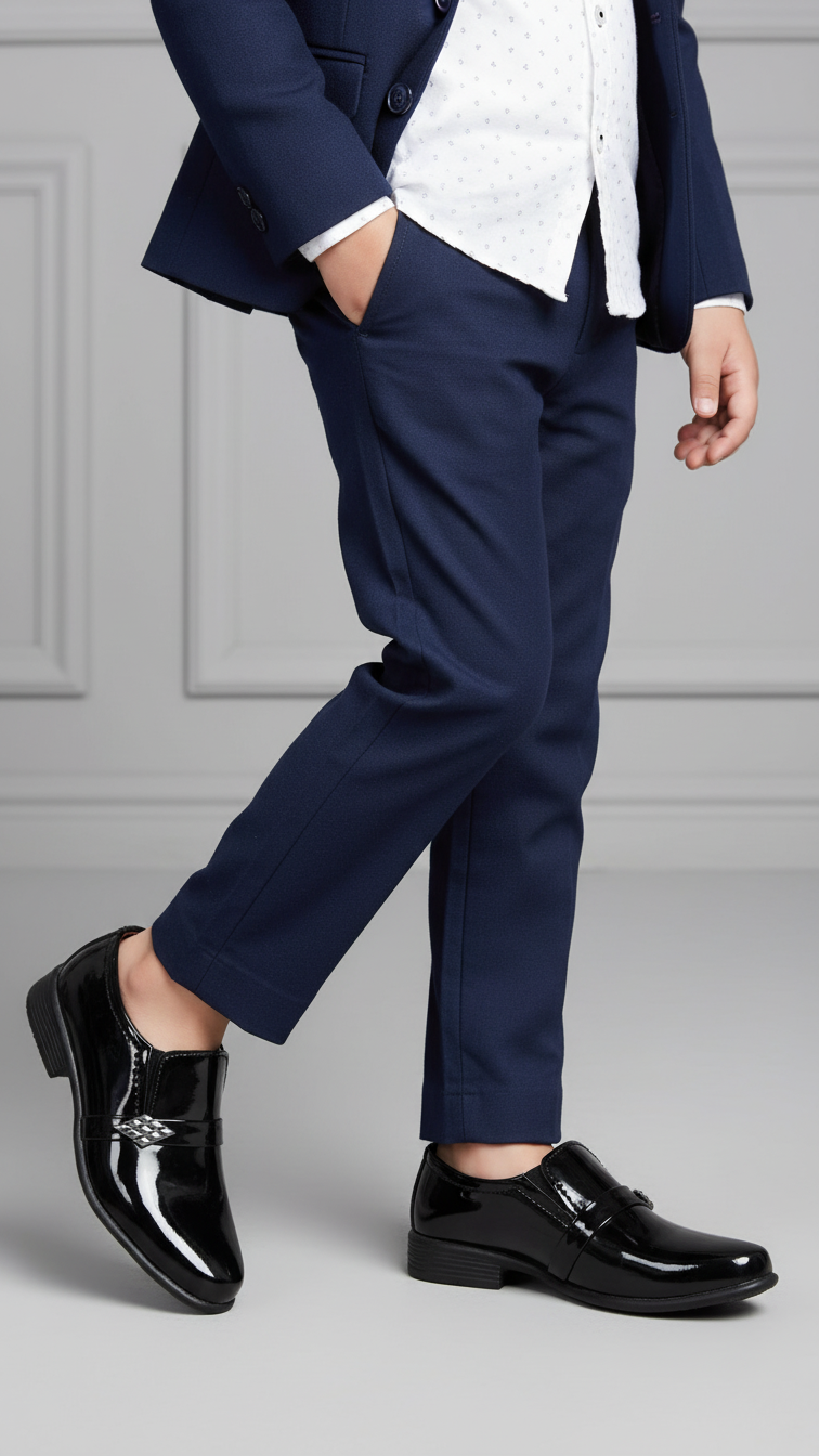 Complete any formal look with these black boys' formal shoes, offering a polished design and comfortable fit.