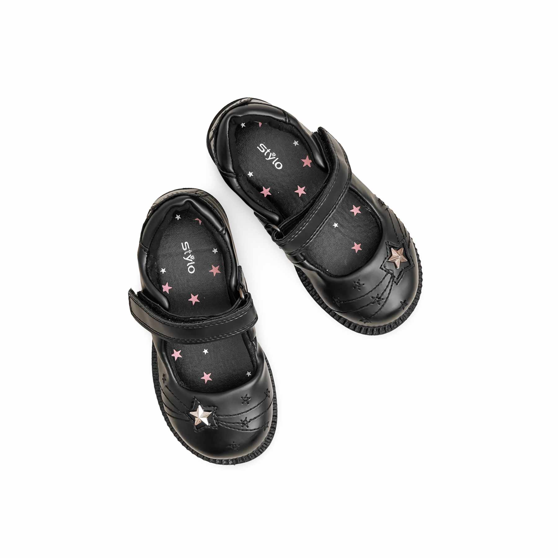 Girls Black Velcro Strap School Shoes SK0086