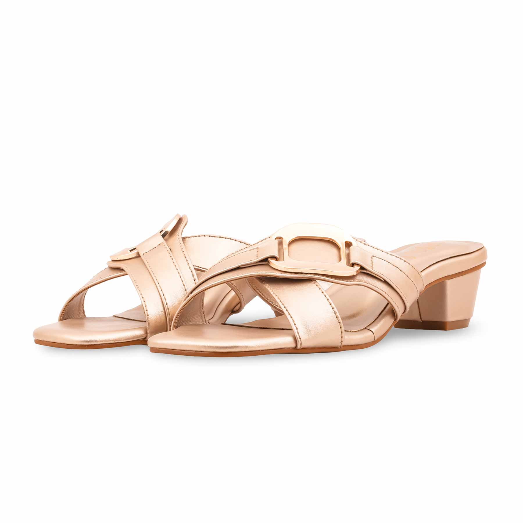 Elevate your look with this golden formal slipper for ladies. Featuring chic criss-cross straps with a gold buckle and a comfortable low heel, it’s ideal for weddings and formal parties.