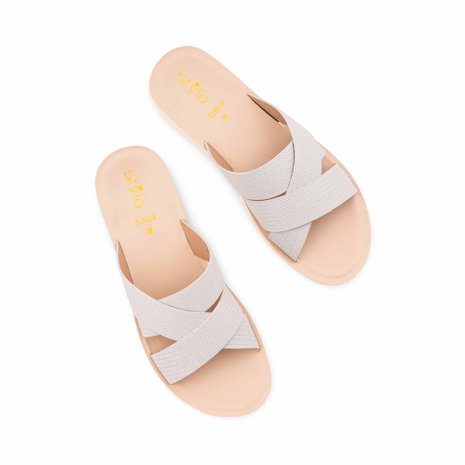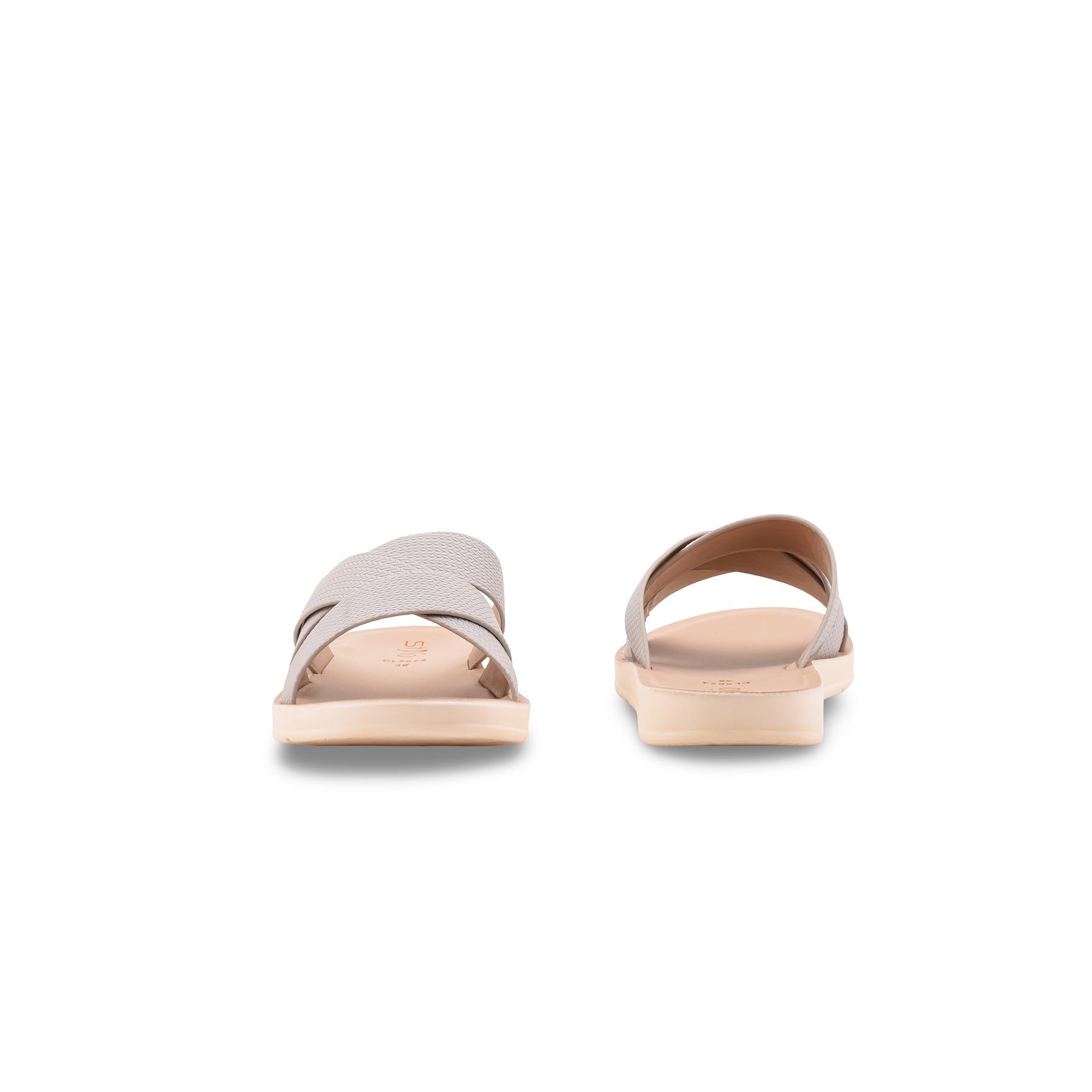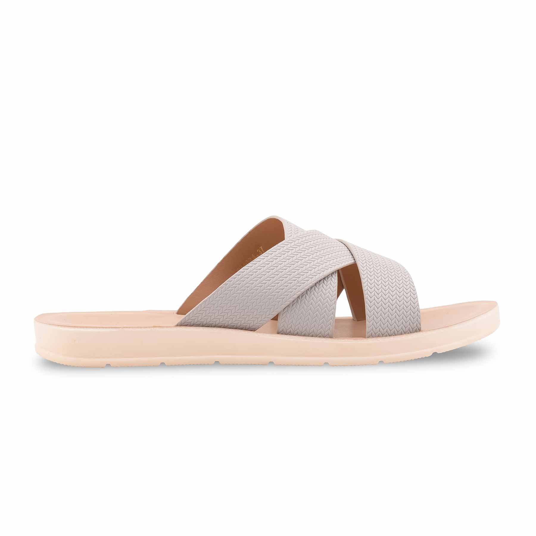 Step into all-day comfort with this light grey casual softy for ladies. Featuring textured criss-cross straps and a cushioned sole, it’s the perfect slip-on for effortless daily style and walking ease.