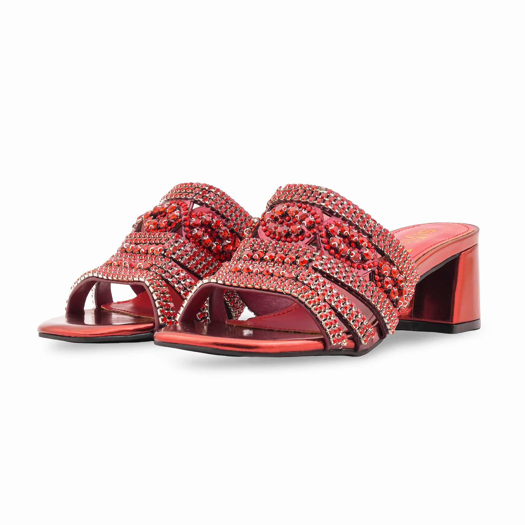 Stun on your special day with this maroon fancy bridal sandal. Featuring an opulent rhinestone-encrusted upper and a stable block heel, it blends ultimate glamour with all-day comfort.