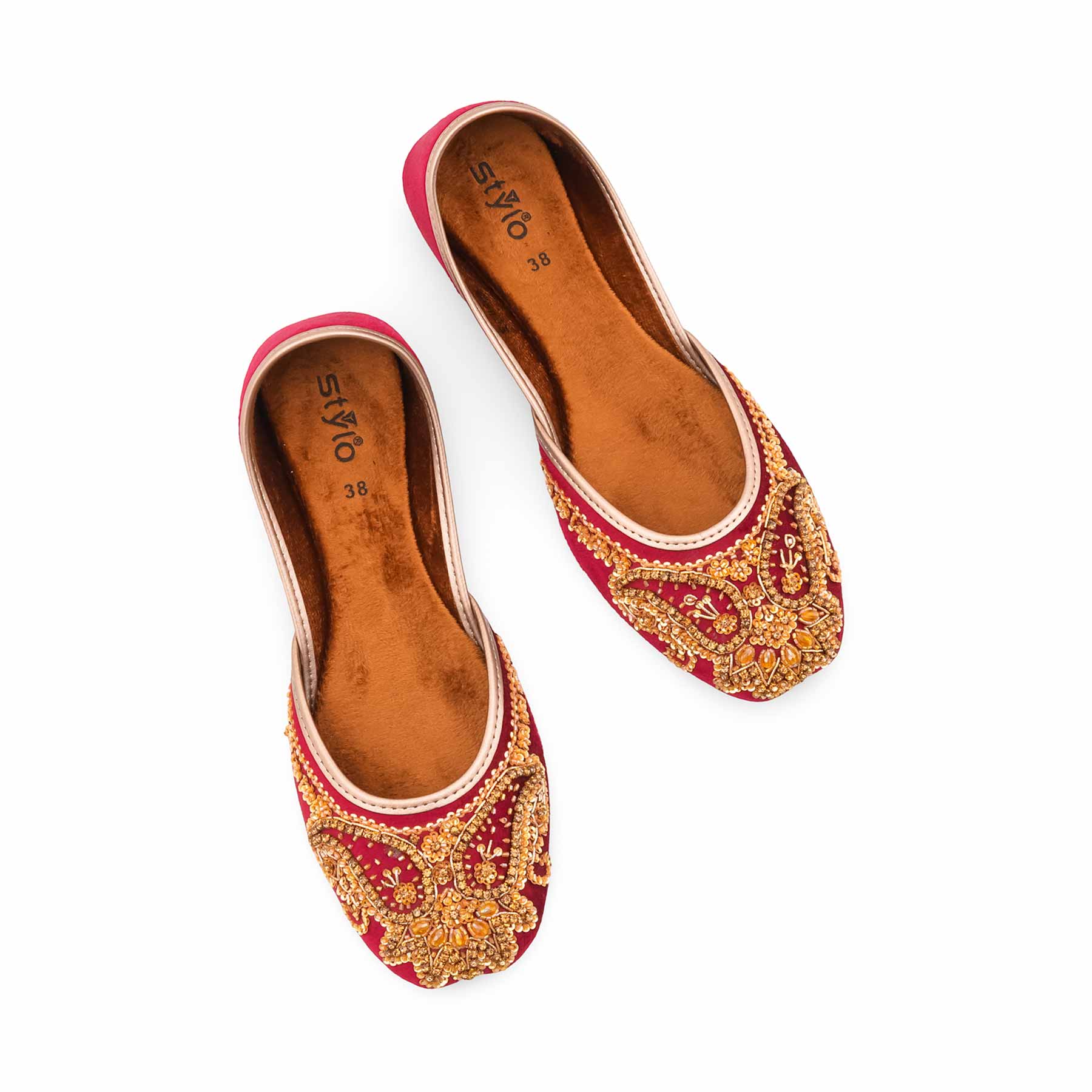 Upper: Premium Velvet with Intricate Gold Beadwork