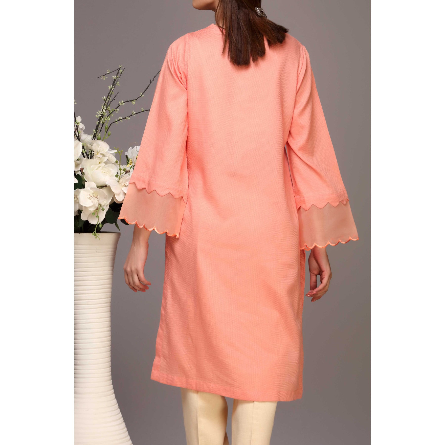 Peach Color Embellished Dobby Lawn Shirt PW1151