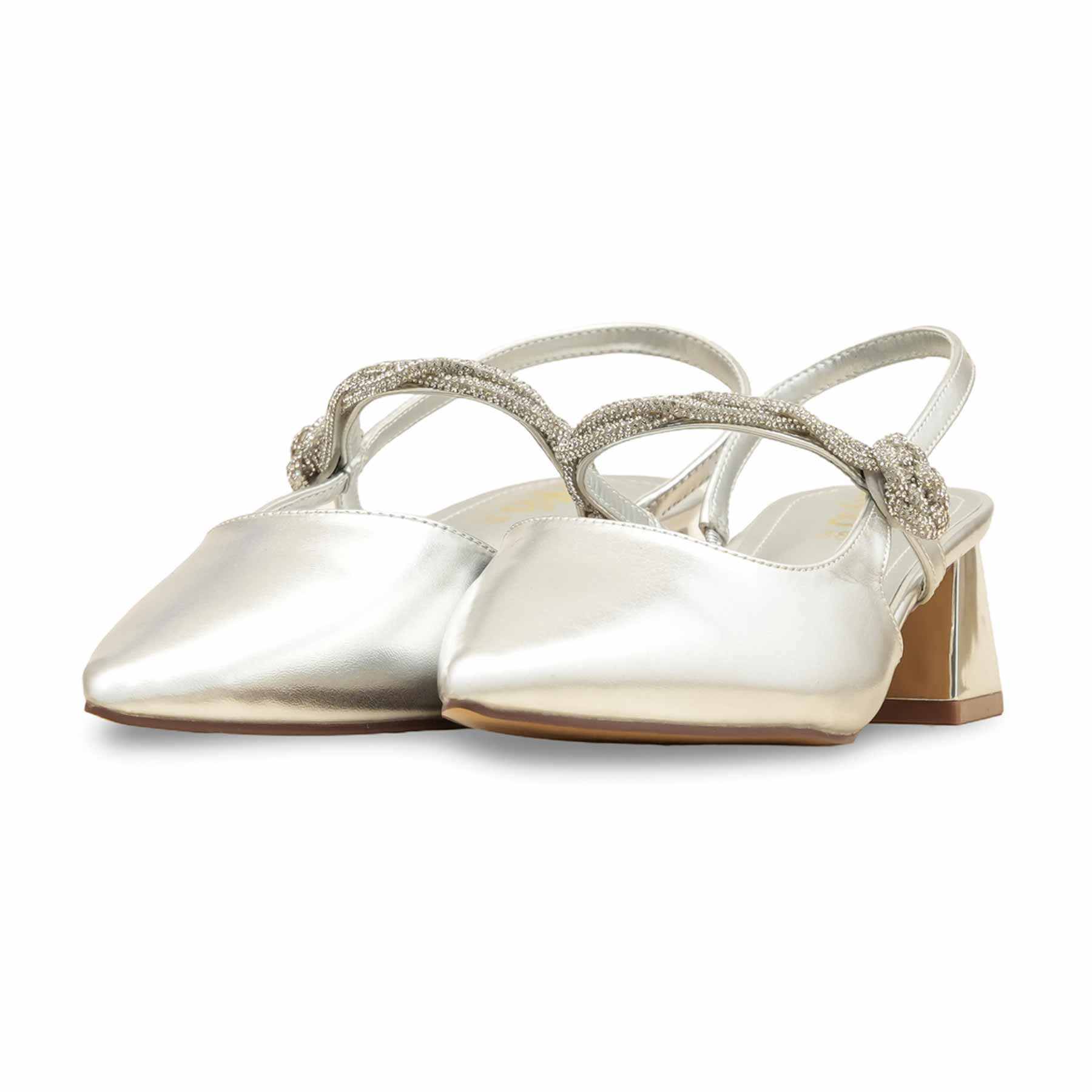 Designed for elegance and comfort, these beautiful metallic Bridal shoes are perfect for your wedding or special event. The shoe features a subtle sparkling gold finish and a striking twisted rhinestone strap that catches the light. The stable, low block heel provides comfortable lift, ensuring you can celebrate all day or night in sophisticated style.
