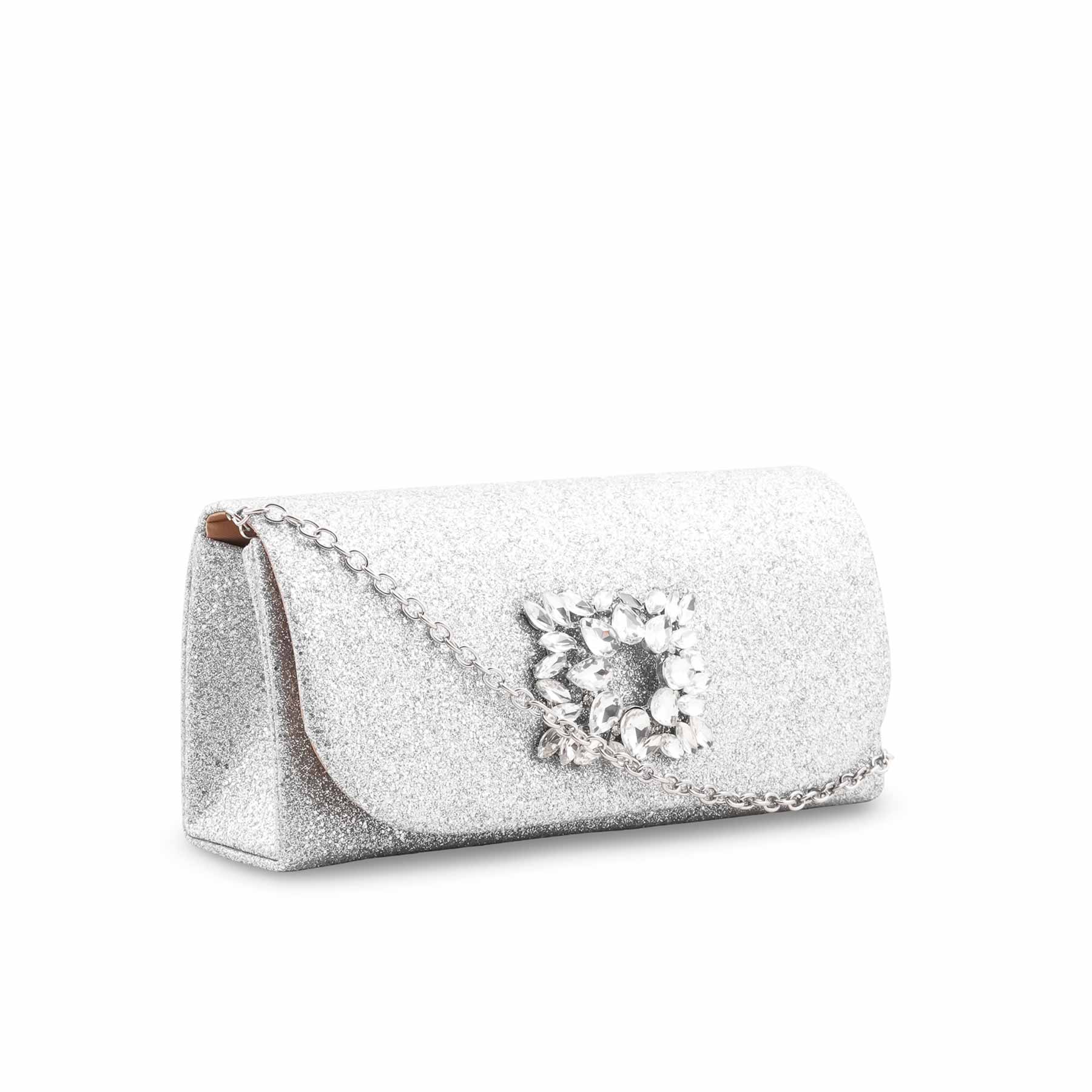 Silver Fancy Clutch For Ladies P24415