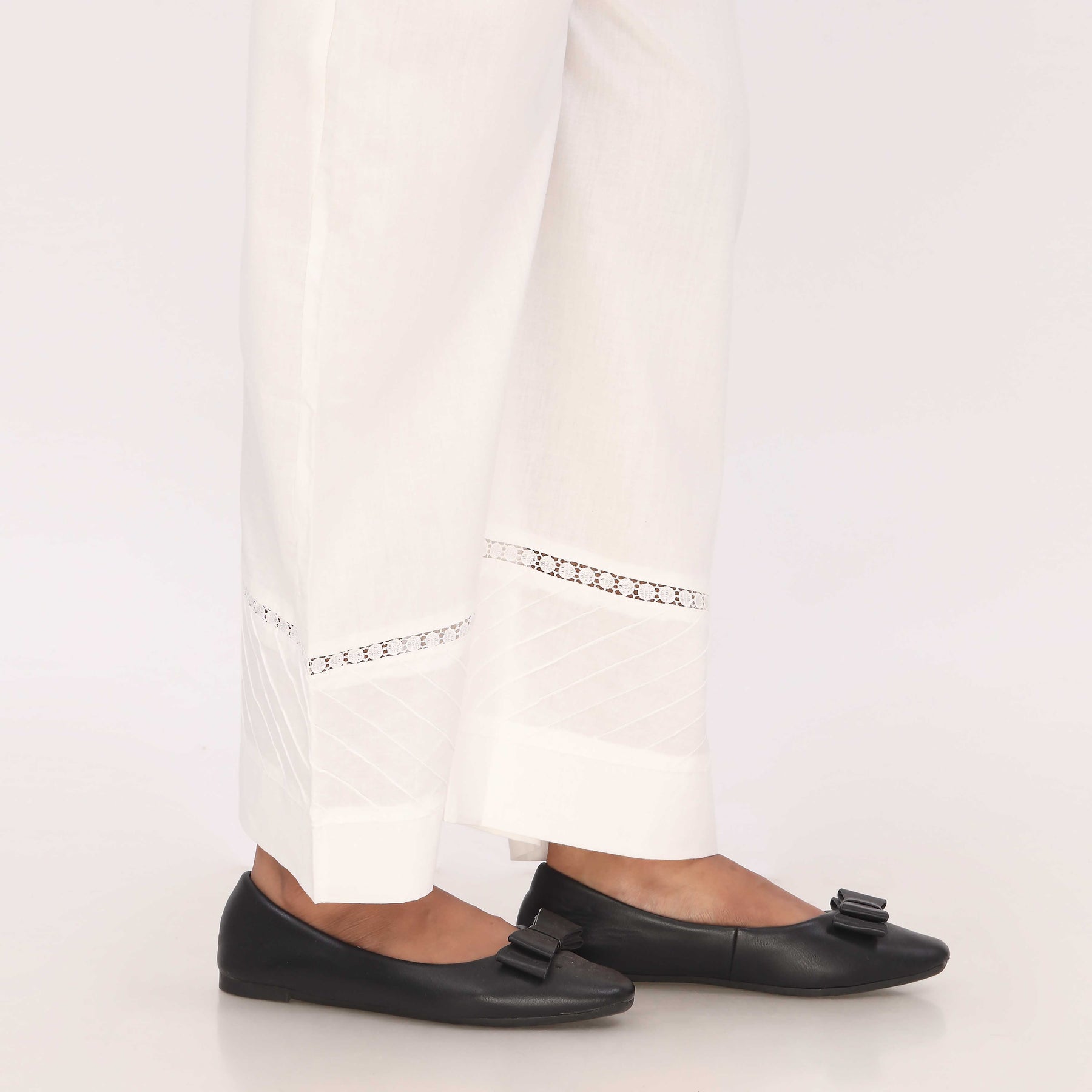 Cotton Cambric Trouser With Lace And Stitching Details At Bottom