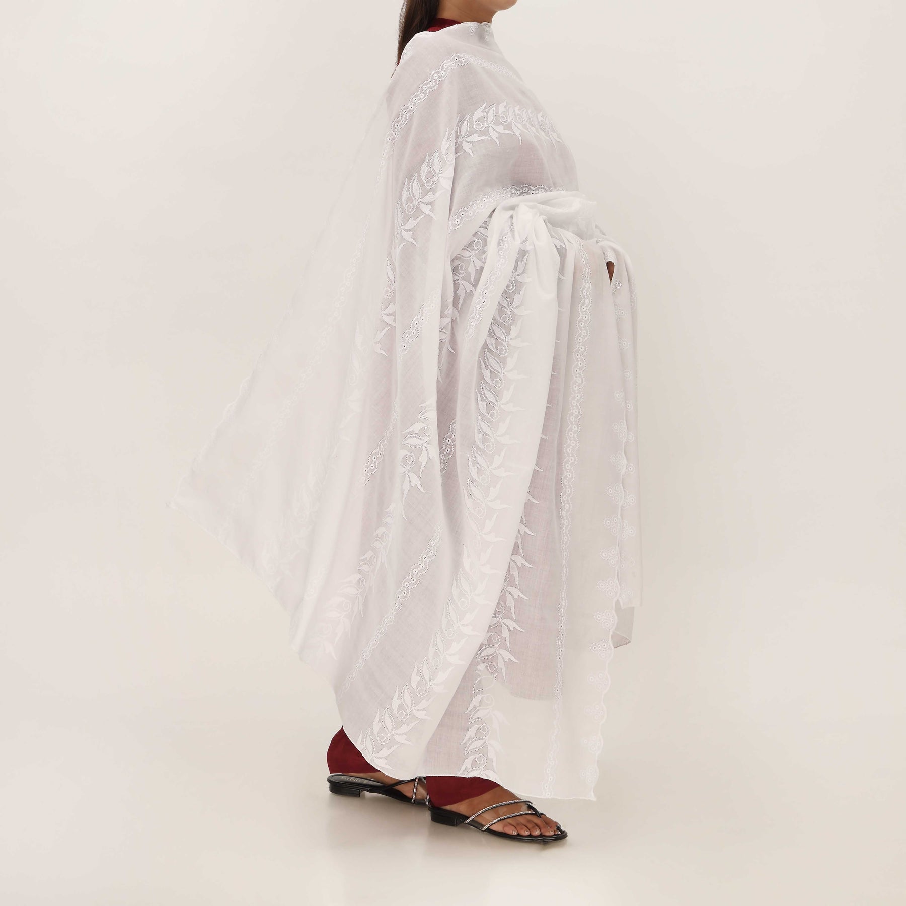 White Embroidered Dupatta PD5460